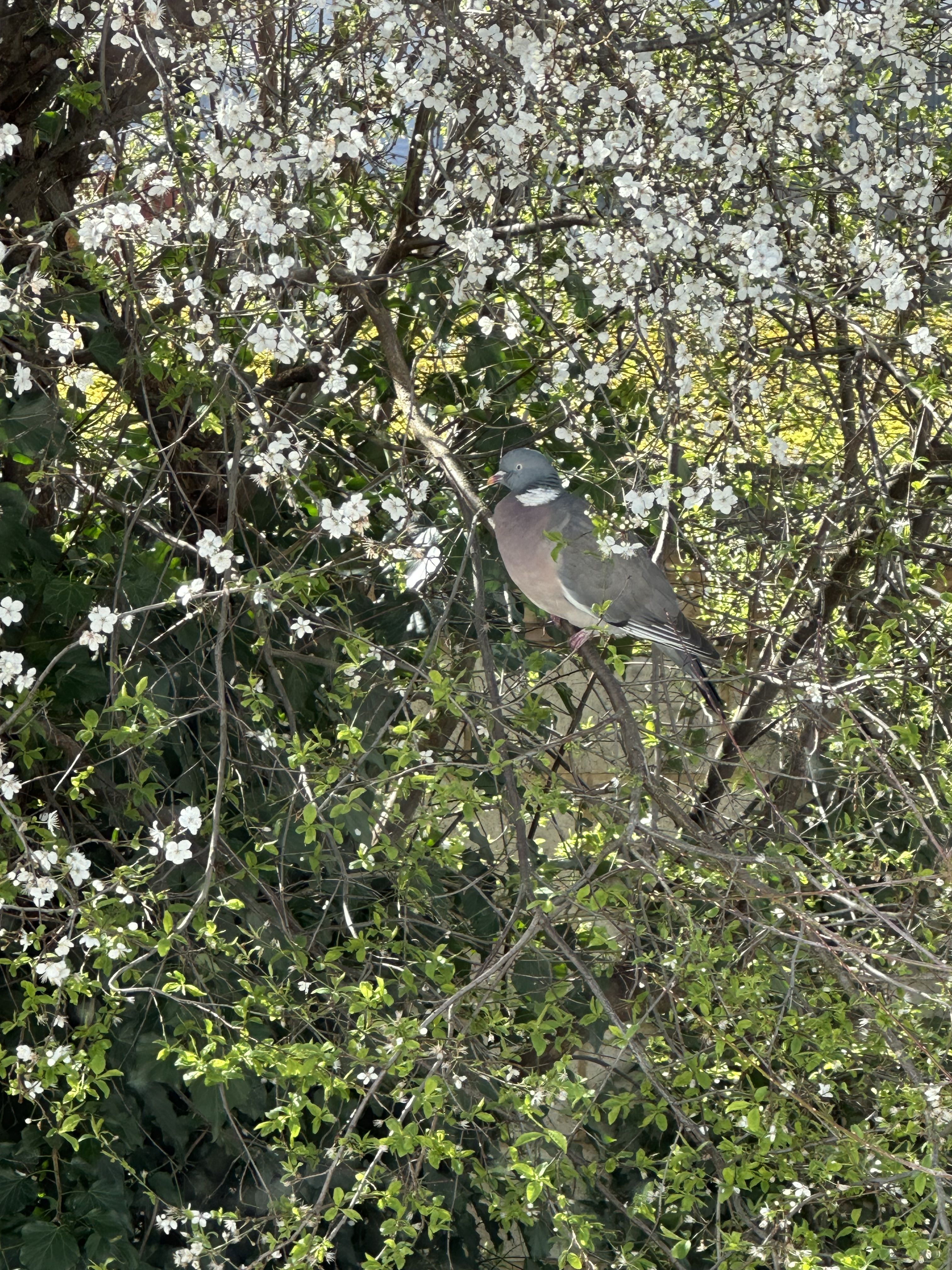 A close up of a pigeon in a tree. Photo by Maisie Edwin.