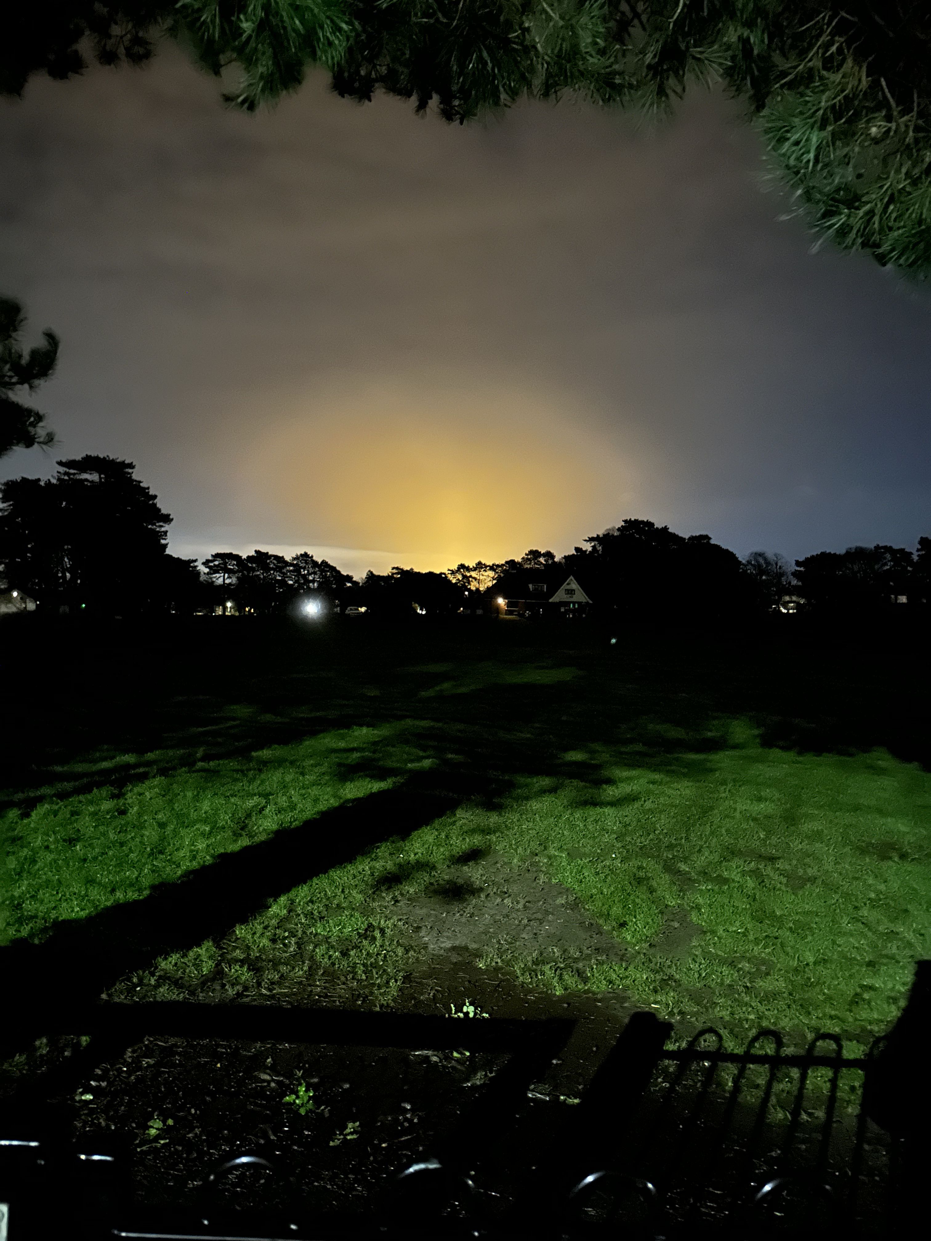 Close up of bright glow from Vitality Stadium. Photo by Maisie Edwin.