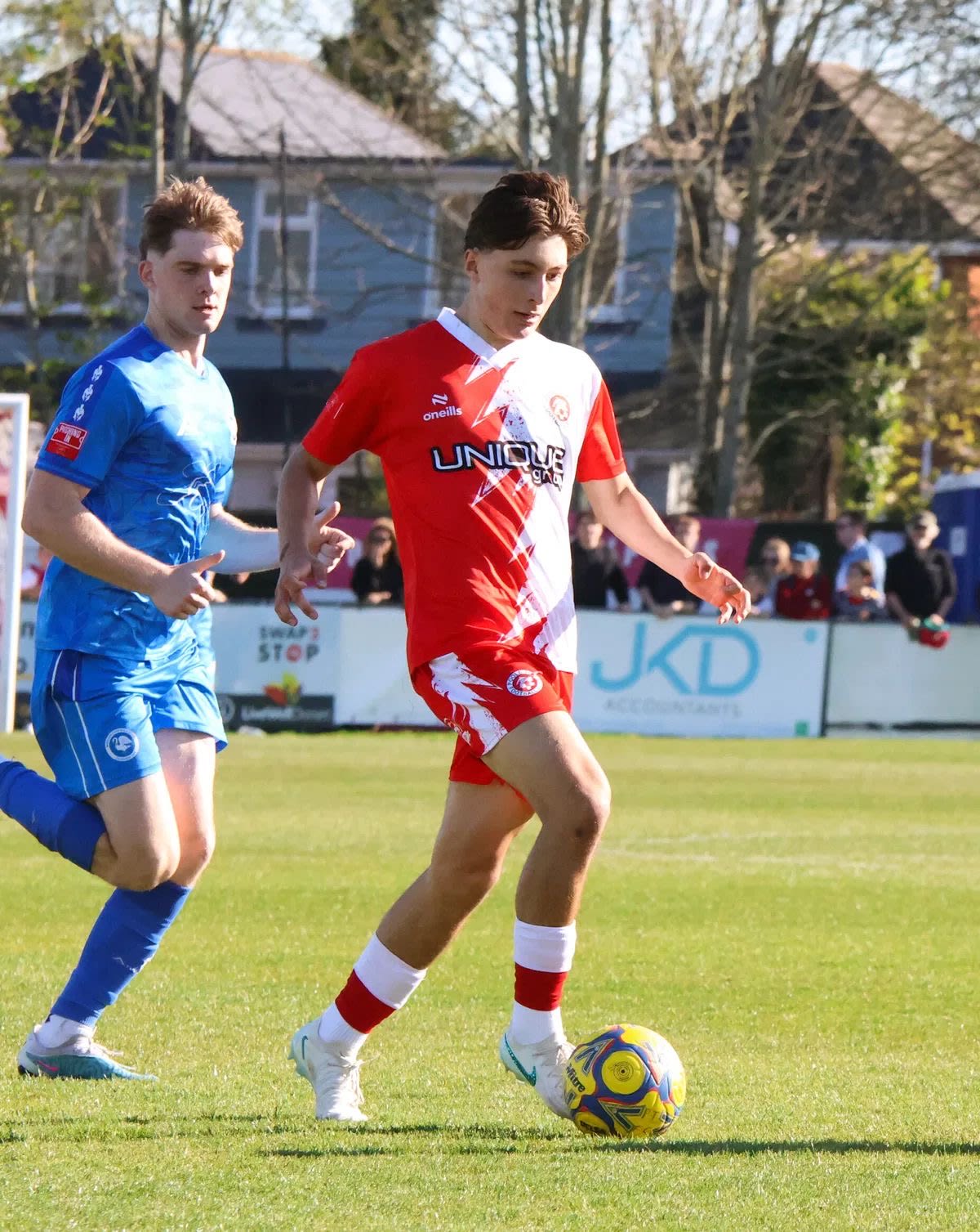 Charlie Stevens in action on loan at Poole Town last season. (Photo Credit: Lauren Kelly)