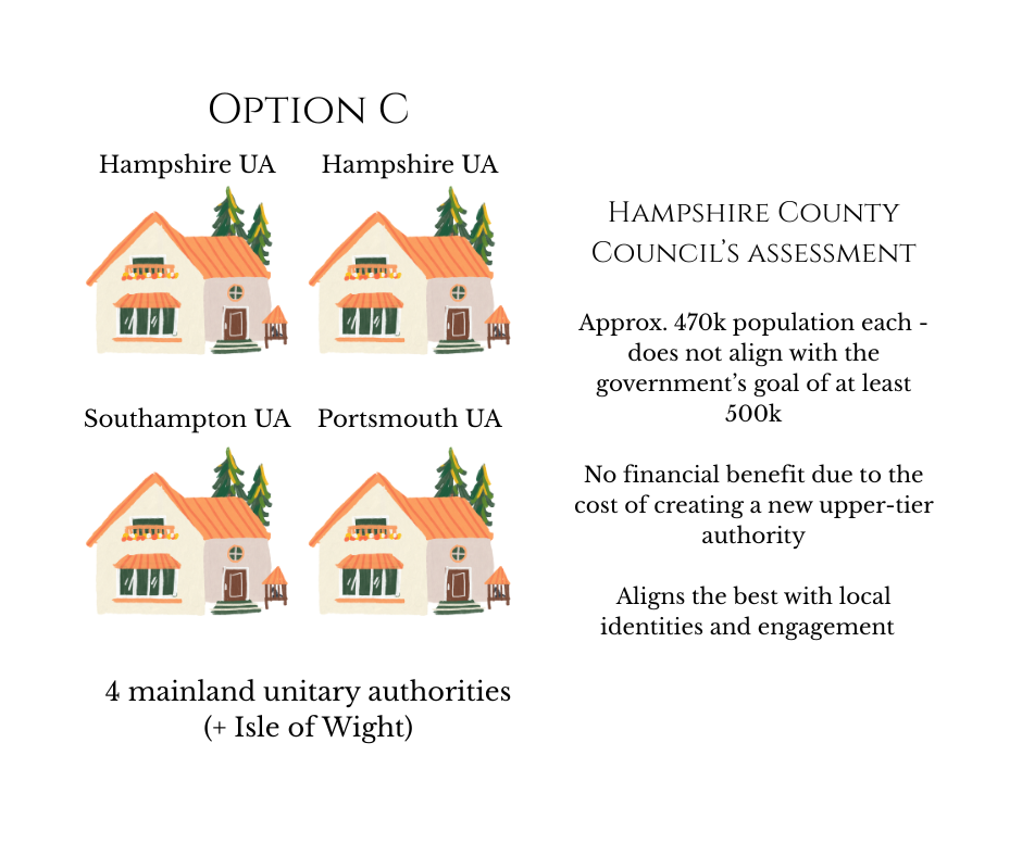 Hampshire is a diverse county with strong historical identities and connections; smaller authorities are better able to foster local connections and engagements. All three of the council leaders I spoke to favour the model of four UAs, and they did not mince their words when discussing this.