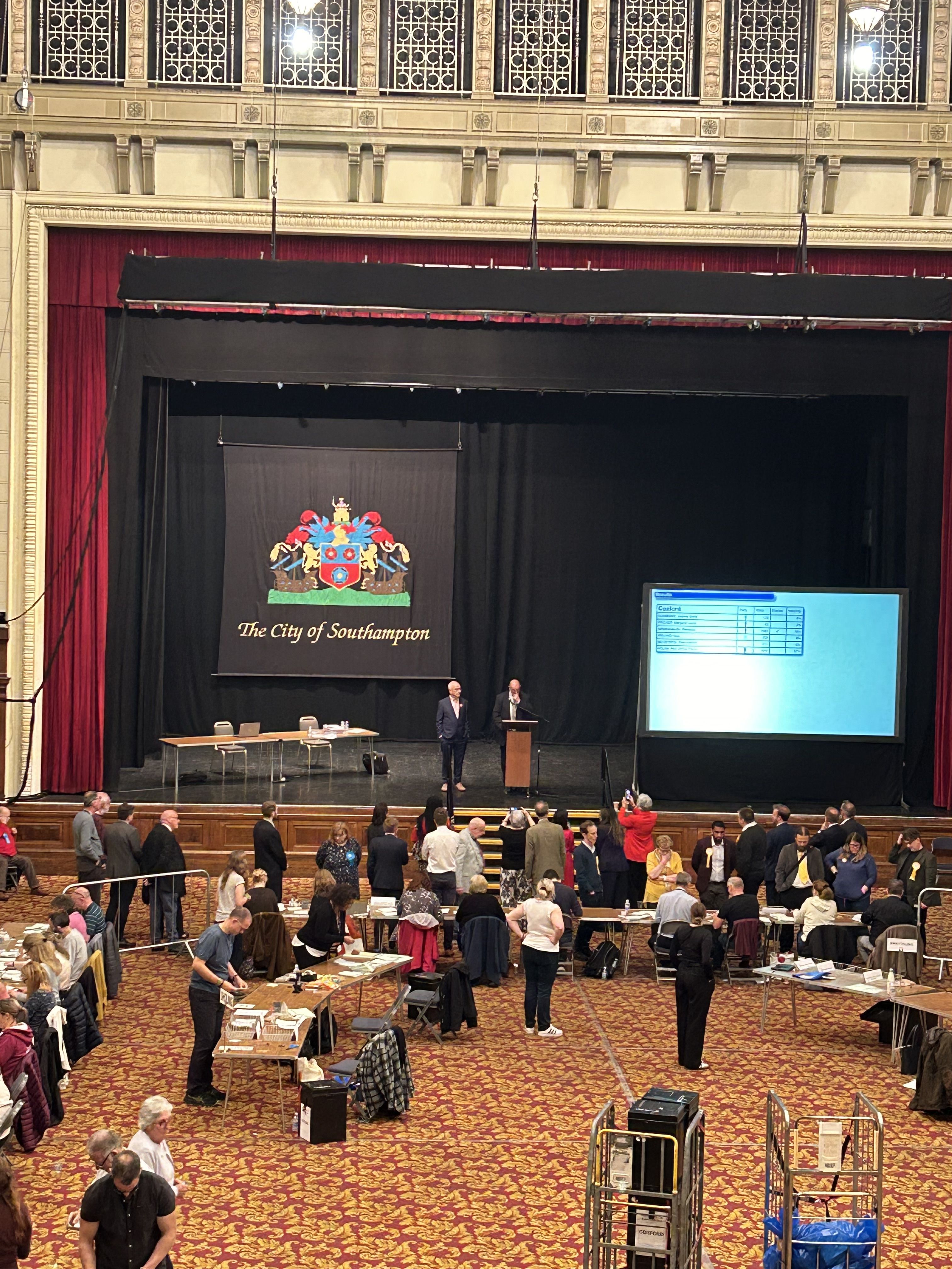 Sitting next to the media on the balcony all night was the small, hardworking Southampton City Council’s communication team. Occasionally breaking to have coffee and a chat with journalists, they spent the night running a smooth communications operation and bridging the gap between journalists and the council.